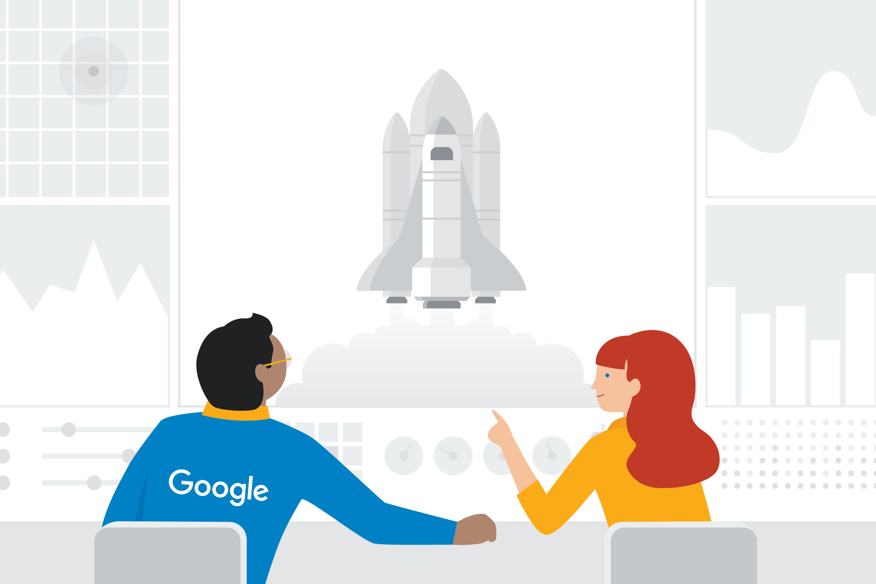 Look and feel for a series of Google events called “Take off with Google”, which aim to inspire SMBs in the digital age. Using a space theme, we created a bank of illustration assets which were used across emails, the event website and the event presentations. We also wrote and designed an A5 booklet to accompany the events, and used the space-themed illustrations throughout.